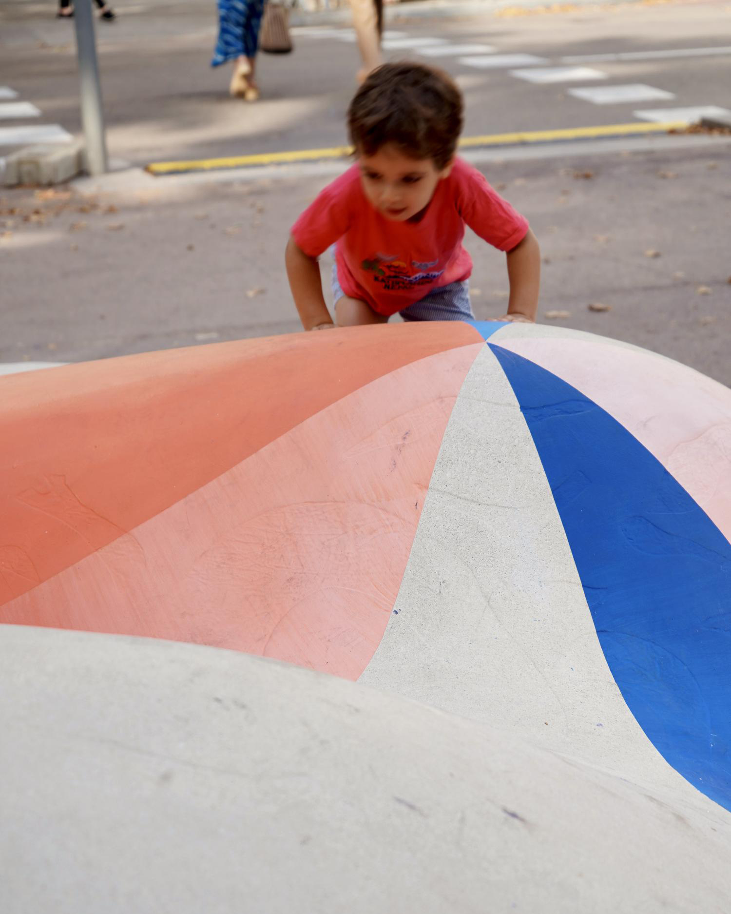 These items were turned into open canvases, inviting the infusion of art and vibrant colors through the art of muralist Anna Taratiel. The result of this endeavor evolved into an interactive and sensory installation, where the convergence of seemingly opposing domains - art and design, materiality and abstraction, geometry and organic forms - guided citizes into a realm of boundless interpretation and free usage. The project's ultimate aim was to carve more amiable and playful pathways for the urban denizens of Barcelona.